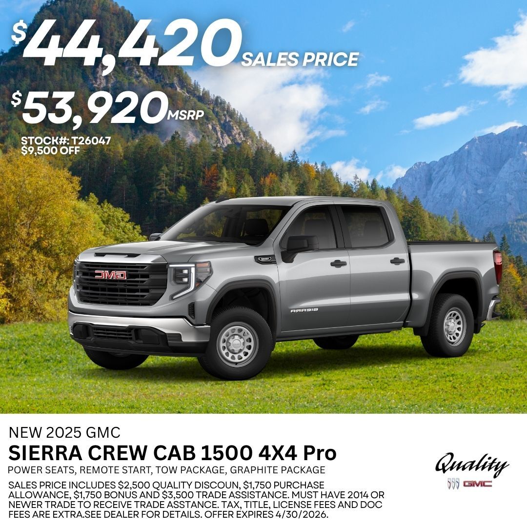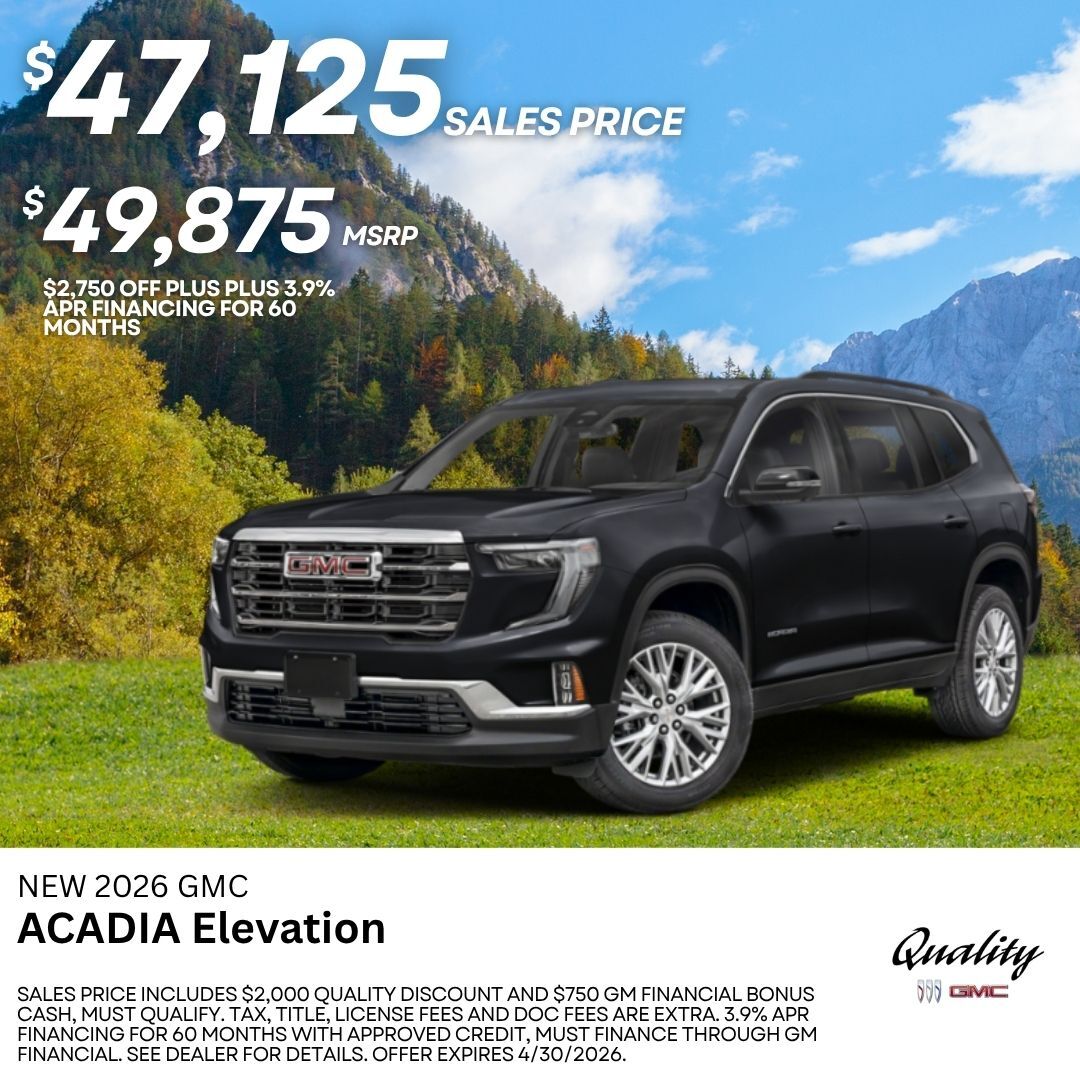 DISCLAIMER: $495 per month for 36 months. $500 cash down payment due at signing, plus applicable tax, title, license, registration, and dealer documentation fee. Lease based on 10,000 miles per year; excess mileage subject to additional charges. Lessee responsible for excess wear and tear, vehicle condition, and any aftermarket accessories or upgrades. Offer includes $1,250 GM Owner Lease Loyalty Rebate, Must Qualify. Lease available to well-qualified buyers with approved credit through participating lenders. Not all customers will qualify. Vehicle availability may vary. Offer subject to change or termination without notice. See dealer for complete details. OFFER EXPIRES FEBRUARY 28TH, 2026